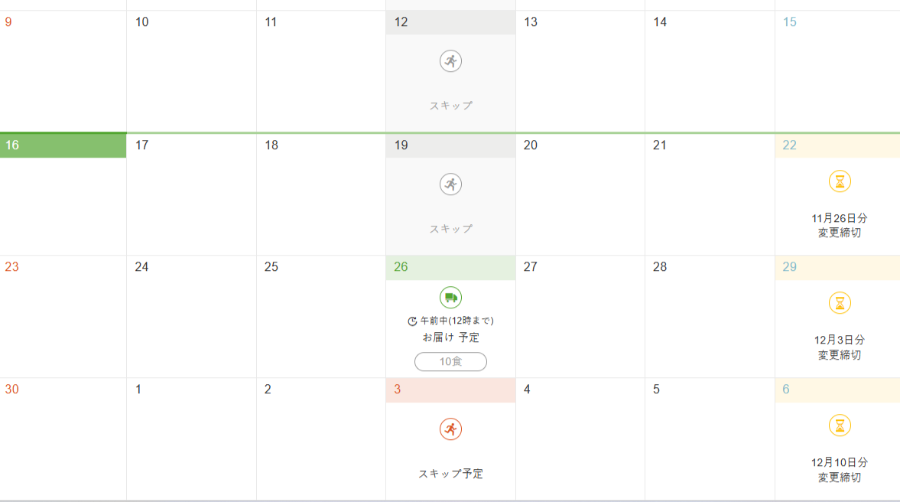 ナッシュの弁当がまだ残っている場合、配送をスキップしてライフスタイルに合わせた注文ができます。