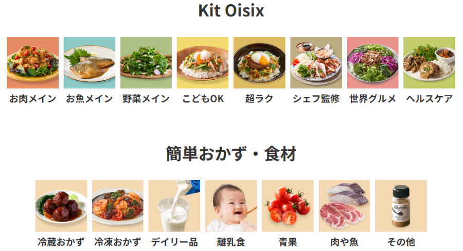 | 種類 | Kit Oisix Oisix Cook Box デリOisix ベビー&キッズ ヘルスケアOisix |